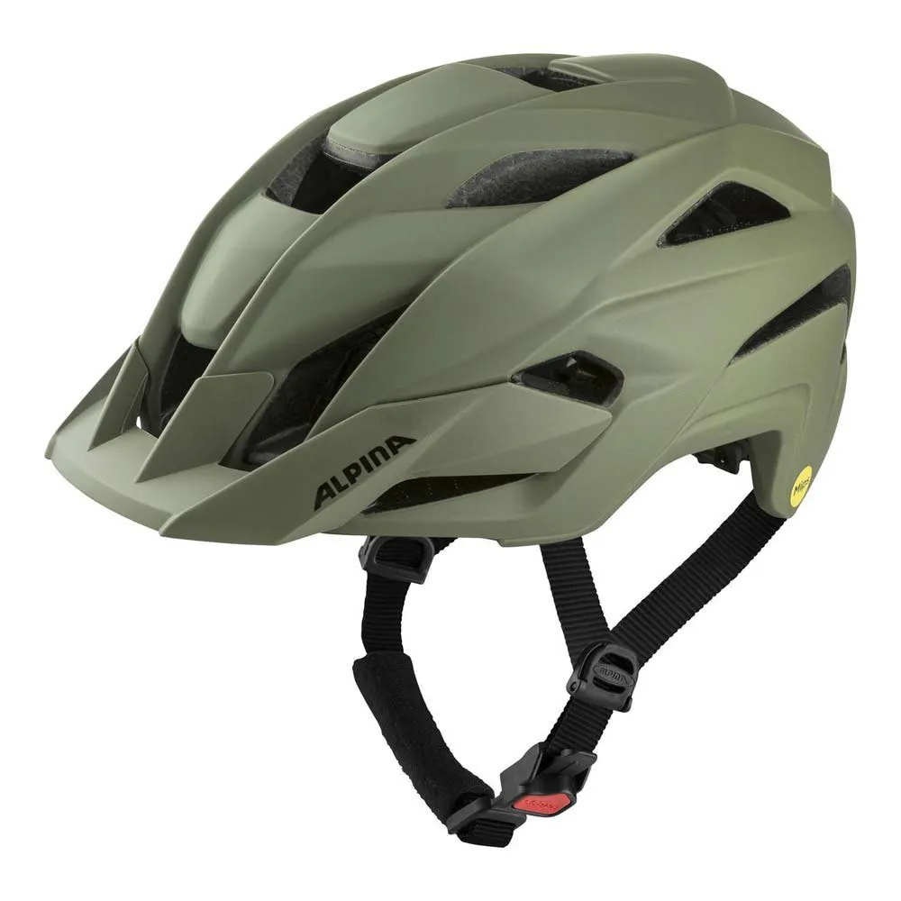 – Probado cien mil veces y utilizado en todos los cascos Alpina: la hebilla de la correa con el botón pulsador rojo y el mecanismo de bloqueo automático de varios pasos. Ergomatic se puede operar con una sola mano (puede aflojar la correa al subir la montaña y apretarla al bajar) y, en caso de caída, el mecanismo de bloqueo no puede abrirse automáticamente.
