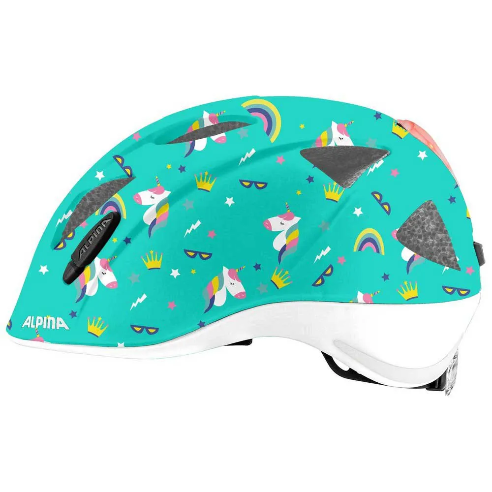 La mejor protección posible para las cabezas más pequeñas: eso es lo que ofrece el Ximo Flash de Alpina. El casco para niños ofrece una multitud de soluciones detalladas, todas orientadas hacia un objetivo: máxima seguridad con el máximo confort. Para un ajuste perfecto, el Run System Classic Slide, que se puede adaptar a la cabeza en tres dimensiones, asegura un alto grado de comodidad y protección. El bajo peso se debe a la producción de moldes donde la carcasa superior está conectada térmicamente con el Hi EPS. Esto da como resultado una conexión de superficie sólida, que es responsable de un diseño muy resistente. Además, los bordes están terminados con la carcasa de policarbonato Edge Protect. Las salidas de aire están ubicadas estratégicamente para mantener los rayos del sol alejados de la cabeza y al mismo tiempo garantizar una excelente ventilación. La parte trasera del casco de la bicicleta está diseñada para ser plana, lo que aumenta la comodidad al sentarse en el asiento para niños o el remolque. Los reflectores y el Multi Fit Light integrados en la parte trasera garantizan una alta visibilidad al anochecer o por la noche.
